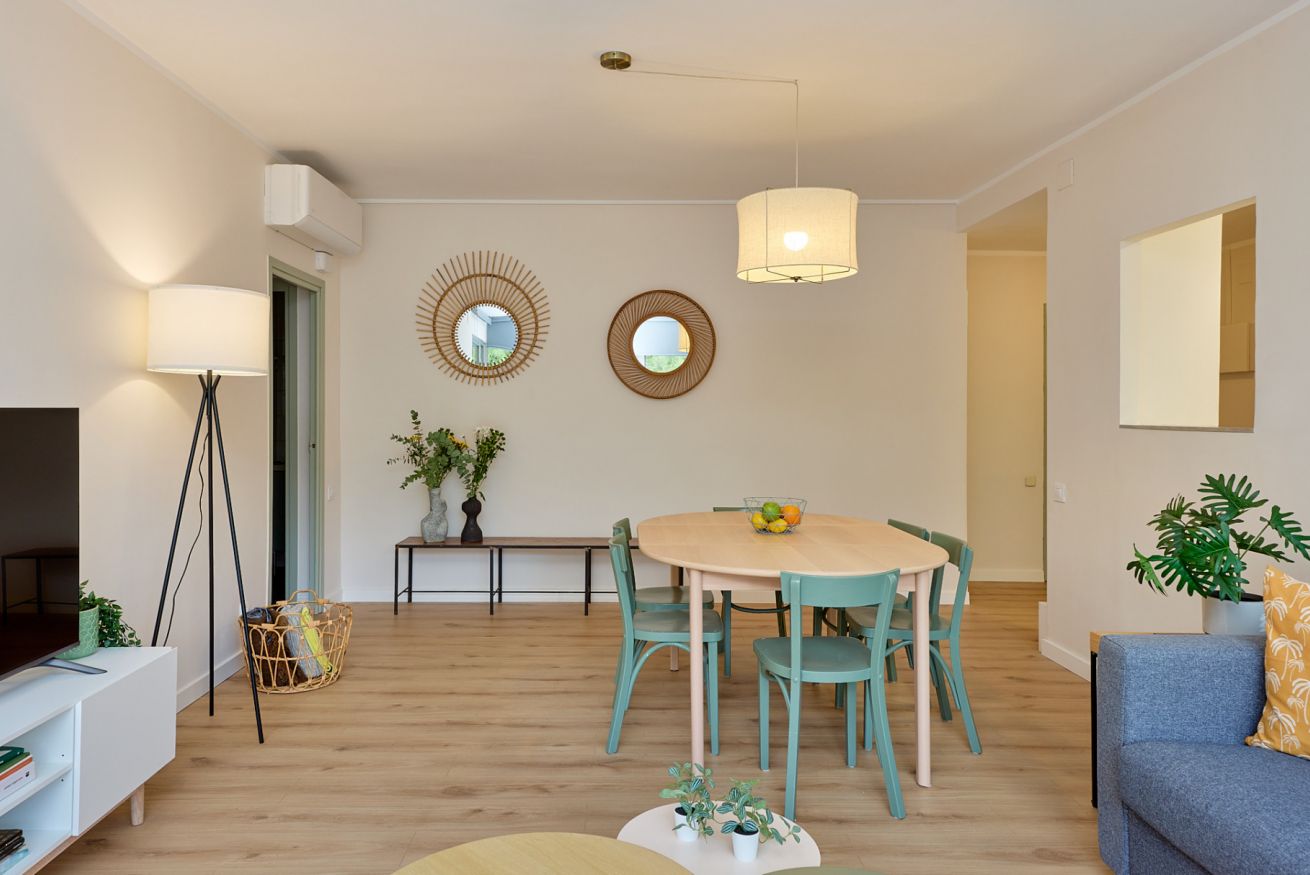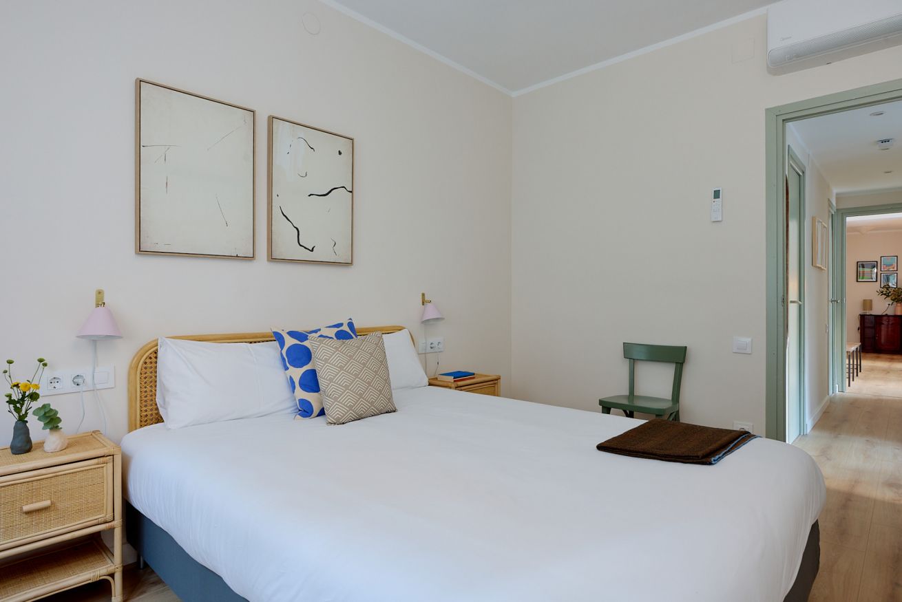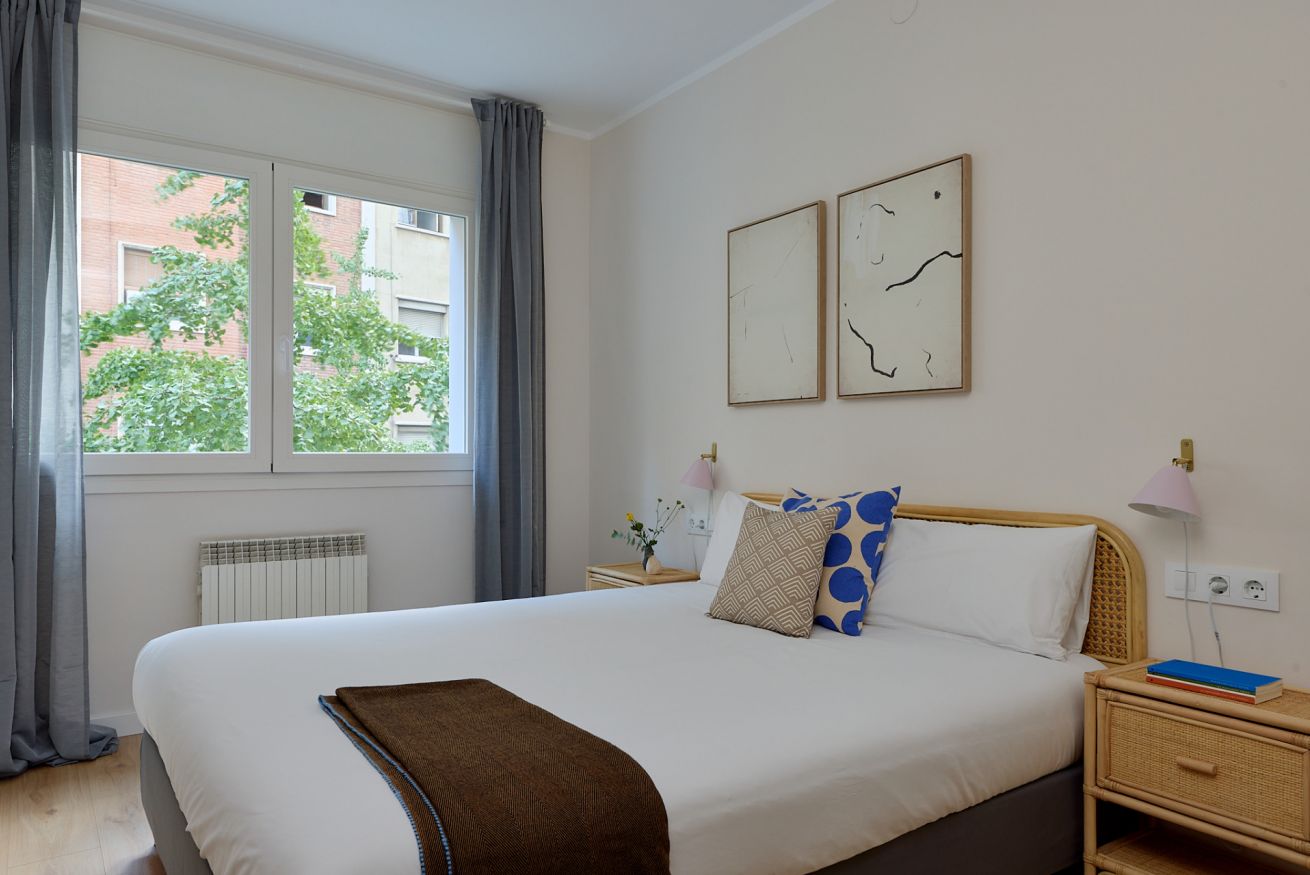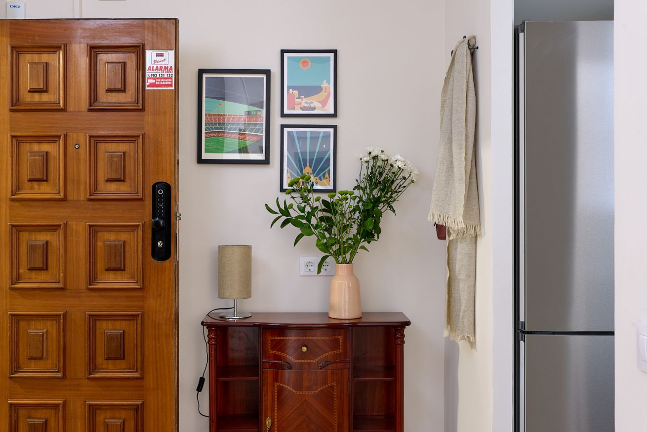 Apartamento luminoso y totalmente renovado frente al Camp Nou, ideal para familias o grupos. Capacidad para 8 personas en tres habitaciones dobles, más un sofá cama doble. Situado en la primera planta con ascensor. Dos modernos cuartos de baño, aire acondicionado en todas las estancias y un balcón con asientos al aire libre con vistas a un tranquilo jardín público frente al Camp Nou. Comodidad y ubicación excepcionales para explorar Barcelona.